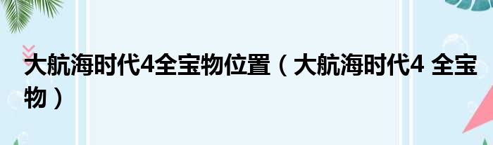 大家好,小城来为大家解答以上问题。大航海时代4全宝藏方位,大航海时代4 全宝藏很多人还不知道,现在让我们一起来看看吧!