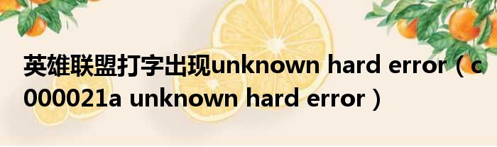 以上便是【英雄联盟打字呈现unknown hard error(c000021a unknown hard error)】方面的全部内容,如果感兴趣的话,可以收藏,也可以转发给小伙伴们哦。