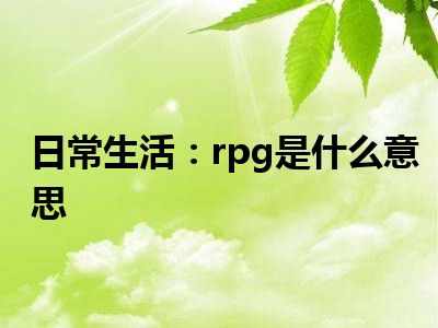 阅读是很多人在生活里最爱的事件之一,欢迎走进本网站,今日小编讲给大家带来rpg是什么意思的相关消息,感兴趣的话跟着小编一起一探究竟吧!