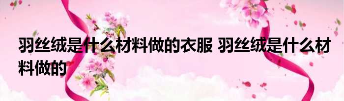 羽丝绒是什么资料做的衣服 羽丝绒是什么资料做的 具体