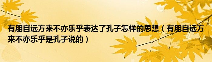 有朋自远方来不亦乐乎表达了孔子怎样的思维 有朋自远方