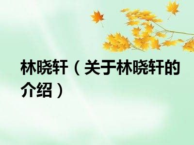 林晓轩 关于林晓轩的介绍详细介绍