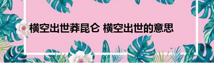 今天由小编浅斟朱颜睡为小伙伴们解答横空出世莽昆仑,横空出世的意思的相关问题,让我们一起看看吧!