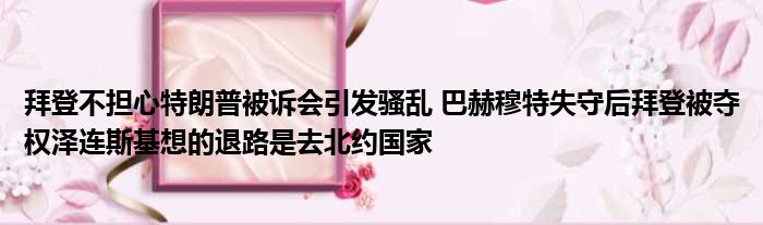 大家好,小编【凝晨】,拜登不忧虑特朗普被诉会引发骚乱 巴赫穆特失守后拜登被夺权泽连斯基想的退路是去北约国家很多人还不知道,那么现在让我们一起来看看吧!