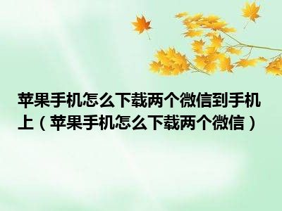 大家好,现在由小编光风霁月为大家讲解一下这个问题苹果手机怎么下载两个微信:让我们来一起学习吧!