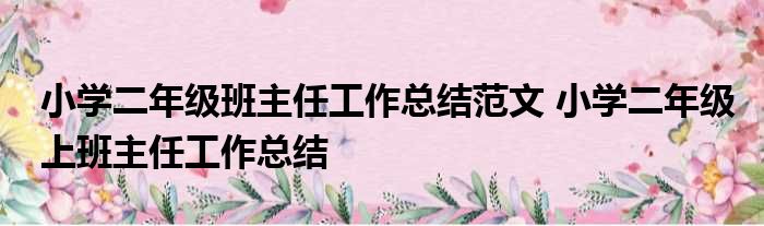 小学二年级班主任工作总结范文 小学二年级上班主任工作