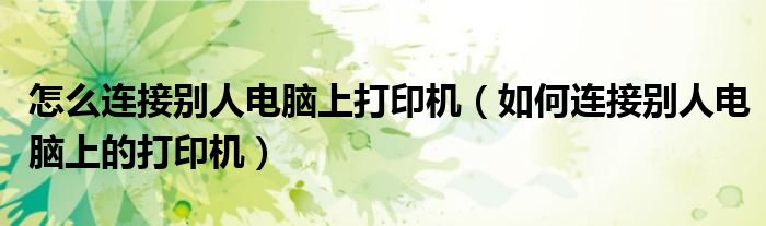 以上便是关于【怎样衔接他人电脑上打印机(如何衔接他人电脑上的打印机)】的全部内容,如果喜欢可以关注本站的其它知识哦。