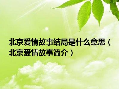 以上就是北京爱情故事结局是什么意思方面的全部内容,如果感兴趣的话,可以收藏,也可以转发给小伙伴们哦。