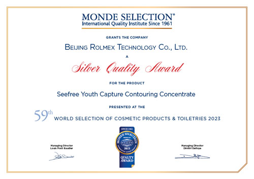 2023年4月,代表全球化装质量量判定荣誉的“世界质量评鉴大会(蒙特奖Monde Selection)”揭晓了本年度获奖名单。罗麦科技旗下的仙肤莱芳华定格塑颜液,从来自全球的数千件选品中锋芒毕露,一举斩获银奖荣誉。