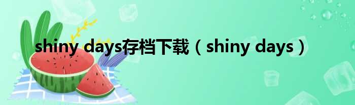 大家好,小城来为大家解答以上问题。shiny days存档下载,shiny days很多人还不知道,现在让我们一起来看看吧!