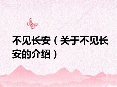 大家好,小新来为大家解答以上的问题。不见长安,关于不见长安的介绍很多人还不知道,现在让我们一起来看看吧!