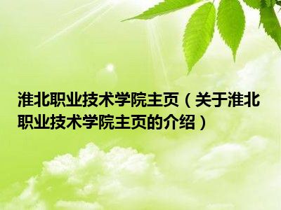 淮北职业技术学院主页 关于淮北职业技术学院主页的介绍