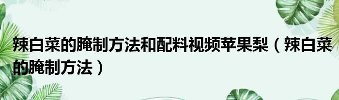 大家好,小城来为大家解答以上问题。辣白菜的腌制办法和配料视频苹果梨,辣白菜的腌制办法很多人还不知道,现在让我们一起来看看吧!