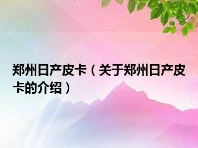 郑州日产皮卡 关于郑州日产皮卡的介绍详细介绍