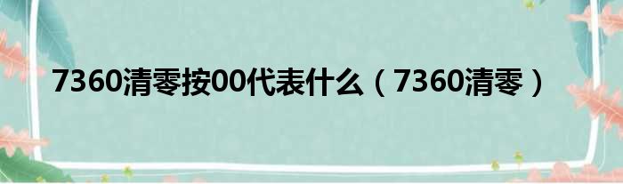 以上便是【7360清零按00代表什么(7360清零)】方面的全部内容,如果感兴趣的话,可以收藏,也可以转发给小伙伴们哦。