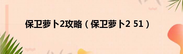 捍卫萝卜2攻略 捍卫萝卜2 51 具体是什么?