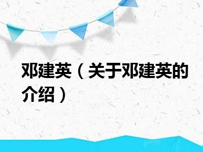 大家好,小新来为大家解答以上的问题。邓建英,关于邓建英的介绍很多人还不知道,现在让我们一起来看看吧!