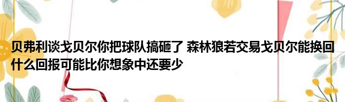 一、贝弗利谈戈贝尔你把球队搞砸了