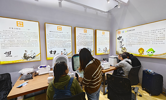 公司展区复原出现了新时优品健康办理服务中心品牌形象区、健康服务区、交流洽谈区等功能区域,展出了免疫力、肠道、心脑血管、皮肤办理、骨健康、体重办理等健康解决方案,并初次露脸了四诊合参全套设备。