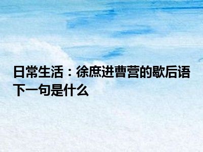 {日常生活:徐庶进曹营的歇后语下一句是什么}
