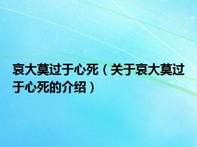 哀大莫过于心死 关于哀大莫过于心死的介绍具体是什么意