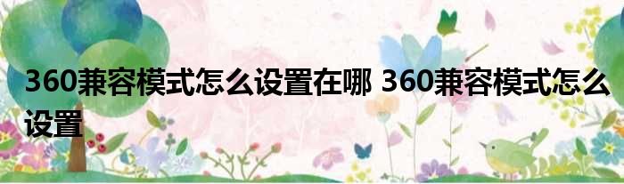 今天由小编别再提起为小伙伴们解答360兼容形式怎样设置在哪,360兼容形式怎样设置的相关问题,让我们一起看看吧!