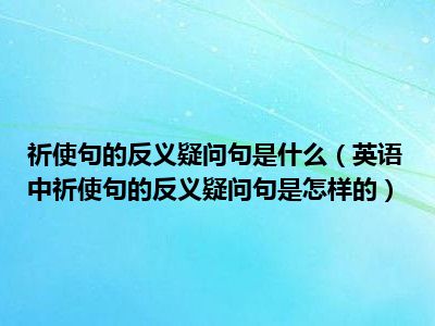 以上就是祈使句的反义疑问句是什么方面的全部内容,如果感兴趣的话,可以收藏,也可以转发给小伙伴们哦。