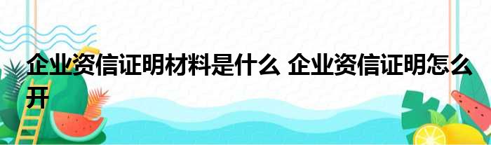 企业资信证明资料是什么 企业资信证明怎样开 详细介绍