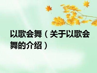 以歌会舞 关于以歌会舞的介绍具体内容详情!