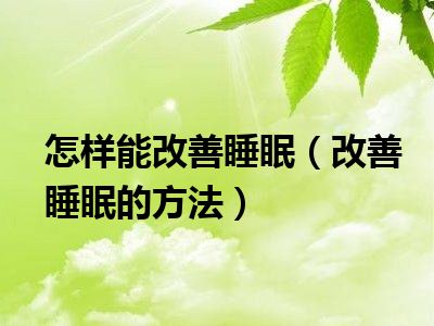 怎样能改善睡眠 改善睡眠的方法详细内容如下