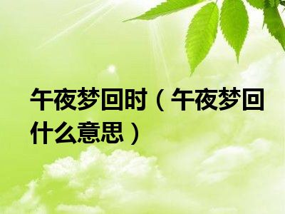 大家好,小编夕阳追脚尖来为大家讲解下。午夜梦回时,午夜梦回什么意思很多人还不知道,现在让我们一起来看看吧!