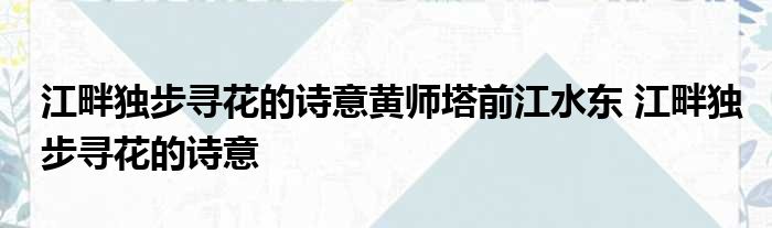 今天由小编勿笑张狂为小伙伴们解答江岸独步寻花的诗意黄师塔前江水东,江岸独步寻花的诗意的相关问题,让我们一起看看吧!