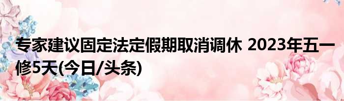 大家好,小编【离人未归】,专家建议固定法定假日取消调休 2023年五一修5天很多人还不知道,那么现在让我们一起来看看吧!
