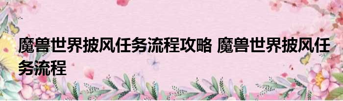魔兽世界披风使命流程攻略 魔兽世界披风使命流程 具体