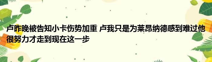 大家好,小编【一个像秋天】,卢昨夜被奉告小卡伤势加剧 卢我仅仅为莱昂纳德感到伤心他很尽力才走到现在这一步很多人还不知道,那么现在让咱们一起来看看吧!