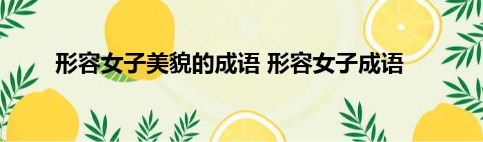 描述女子美貌的成语 描述女子成语 是什么情况?