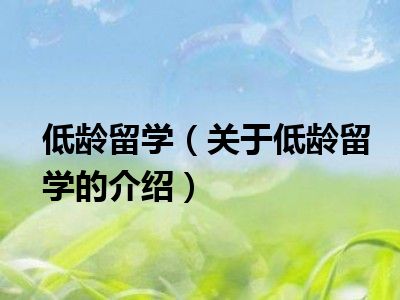 大家好,小新来为大家解答以上的问题。低龄留学,关于低龄留学的介绍很多人还不知道,现在让我们一起来看看吧!