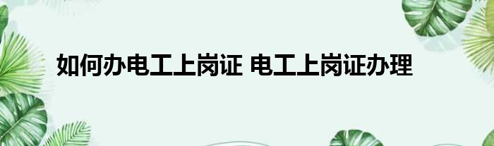 如何办电工上岗证 电工上岗证处理 具体内容详情!