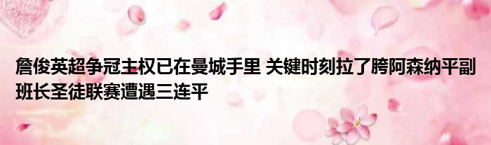 大家好,小编【远行de风】,詹俊英超争冠主权已在曼城手里 关键时刻拉了胯阿森纳平副班长圣徒联赛遭受三连平很多人还不知道,那么现在让我们一起来看看吧!