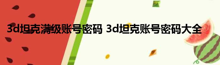 3d坦克满级账号密码 3d坦克账号密码大全 具体是什么?