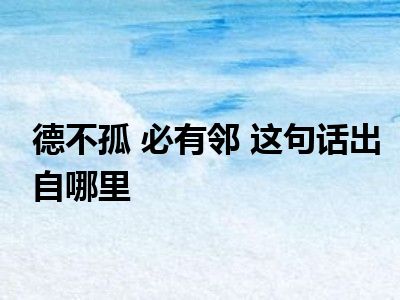 德不孤 必有邻 这句话出自哪里是怎么回事