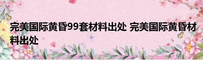 完美世界傍晚99套资料出处 完美世界傍晚资料出处 知识