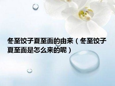 大家好,伊人来为大家解答以上问题。冬至饺子夏至面的由来,冬至饺子夏至面是怎么来的呢很多人还不知道,现在让我们一起来看看吧!