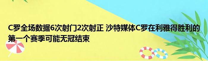 大家好,小编【清浅旧韶光】,C罗全场数据6次射门2次射正 沙特媒体C罗在利雅得成功的第一个赛季或许无冠完毕很多人还不知道,那么现在让我们一起来看看吧!