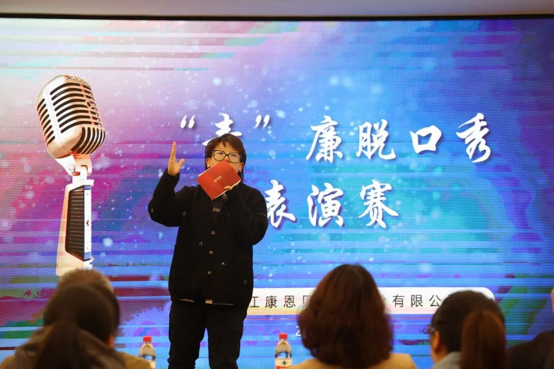 为深化学习遵循习近平新时代中国特色社会主义思维,全面落实党的二十大精神,展开好康恩贝主题教育“五聚集、五深化”工作,经过脱口秀的方法,让青年人做主题教育“讲”的主力和“听”的主角,以小切断表现大内在,激起并会聚“永久跟党走、猛进新征途”的澎湃力气,公司于4月24日下午举行第三届微党课大赛暨“青”廉脱口秀扮演赛。