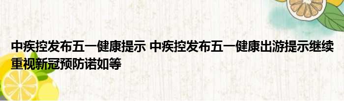二、中疾控发布五一健康出游提示持续注重新冠防备诺如等