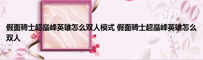 以上就是【假面骑士超巅峰英雄怎样双人形式 假面骑士超巅峰英雄怎样双人】方面的全部内容,如果感兴趣的话,可以收藏,也可以转发给小伙伴们哦。