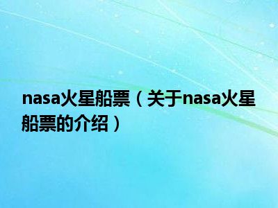 nasa火星船票 关于nasa火星船票的介绍相关知识