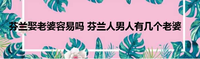 芬兰娶老婆容易吗 芬兰人男人有几个老婆 具体情况详细