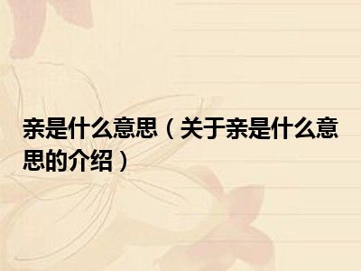 亲是什么意思 关于亲是什么意思的介绍相关介绍